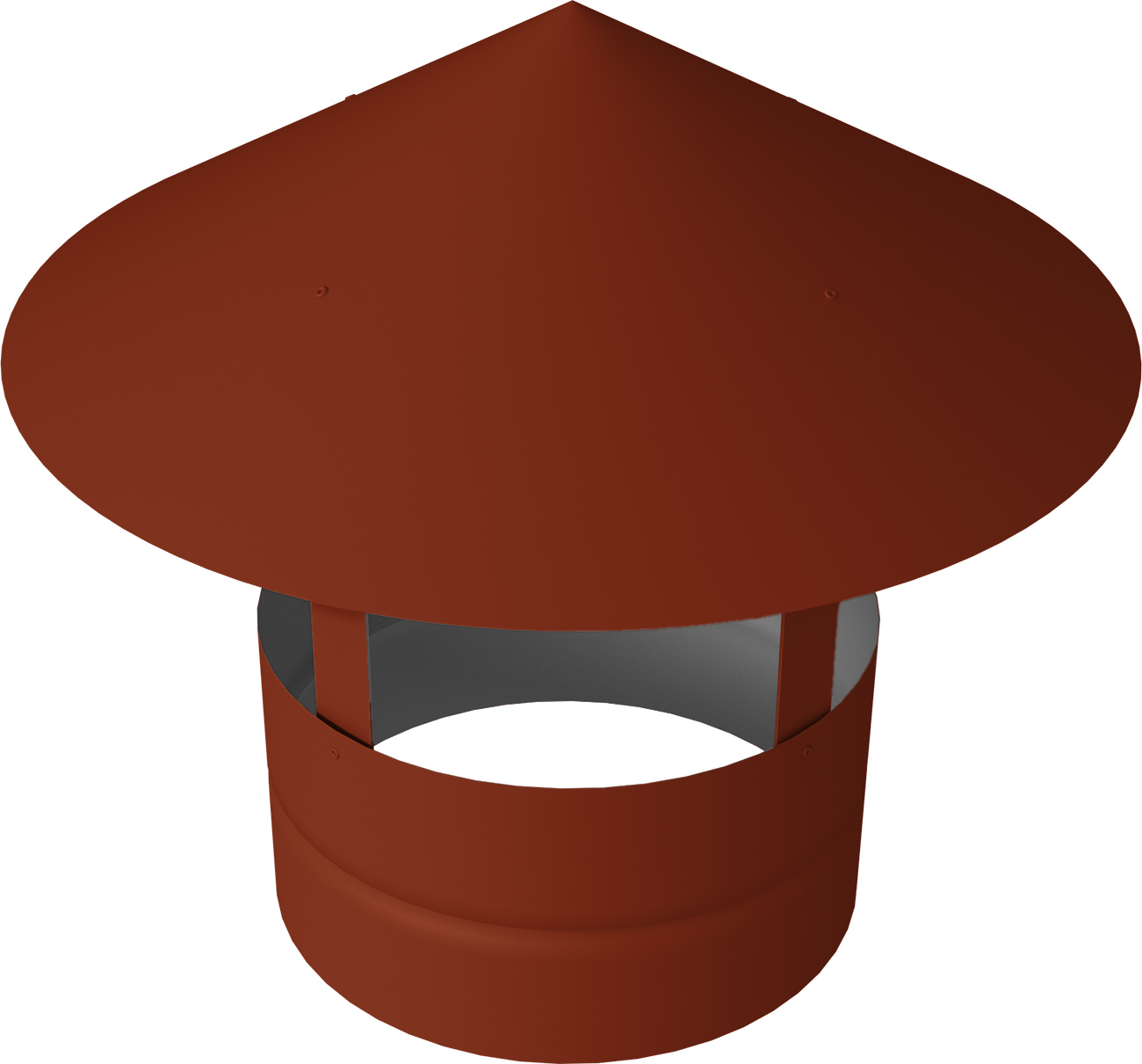 Благодаря основанию дымника (стальной обруч), достигается дополнительная защита от разрушения, т.к. оно стягивает верхнюю часть трубы. Также дымник придает кровле эстетичный и законченный внешний вид.