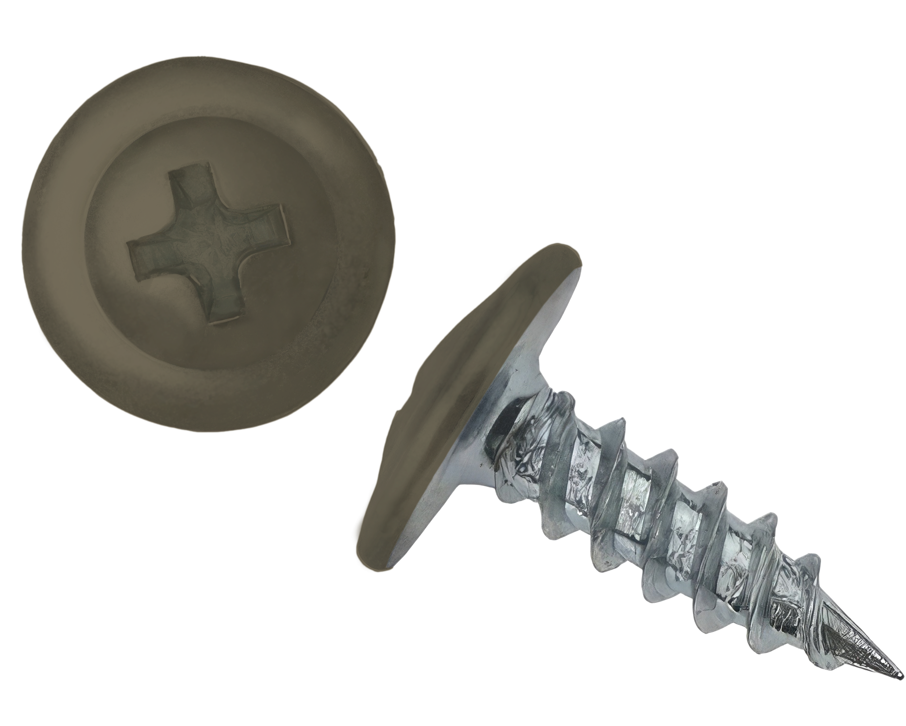 Саморез с напрессованой шайбой (ПШ) - имеют широкую плоскую головку под крестовидную биту (PH2), которая одновременно выполняет роль шайбы. Наконечник оцинкованный - острый.
