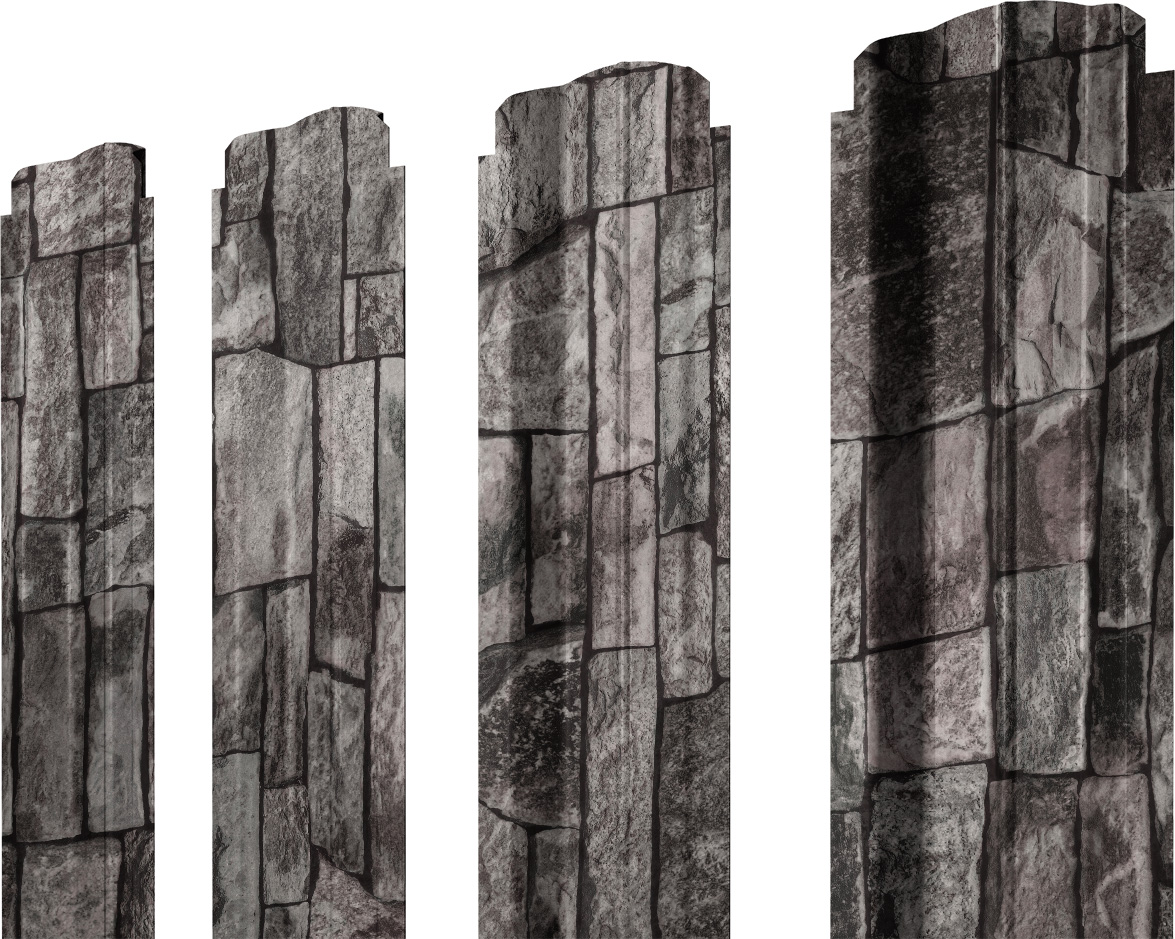 Штакетник П-образный В фигурный — выпуклая во внешнюю сторону форма с канавкой на центральной части. Тем самым у профиля есть ребро жесткости.