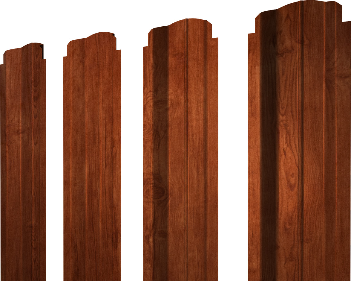 Штакетник П-образный В фигурный — выпуклая во внешнюю сторону форма с канавкой на центральной части. Тем самым у профиля есть ребро жесткости.