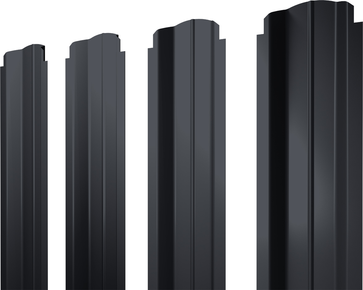 Штакетник П-образный В фигурный — выпуклая во внешнюю сторону форма с канавкой на центральной части. Тем самым у профиля есть ребро жесткости.