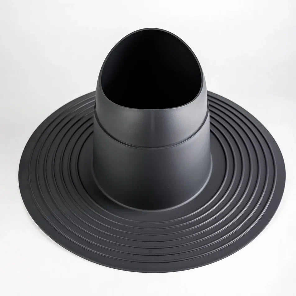 Элемент проходной Krovent Base-VT Flat - проходной элемент высокий устанавливается при монтаже кровельного материала на плоской и пологой битумной кровле для труб диаметром 125-150 мм.
